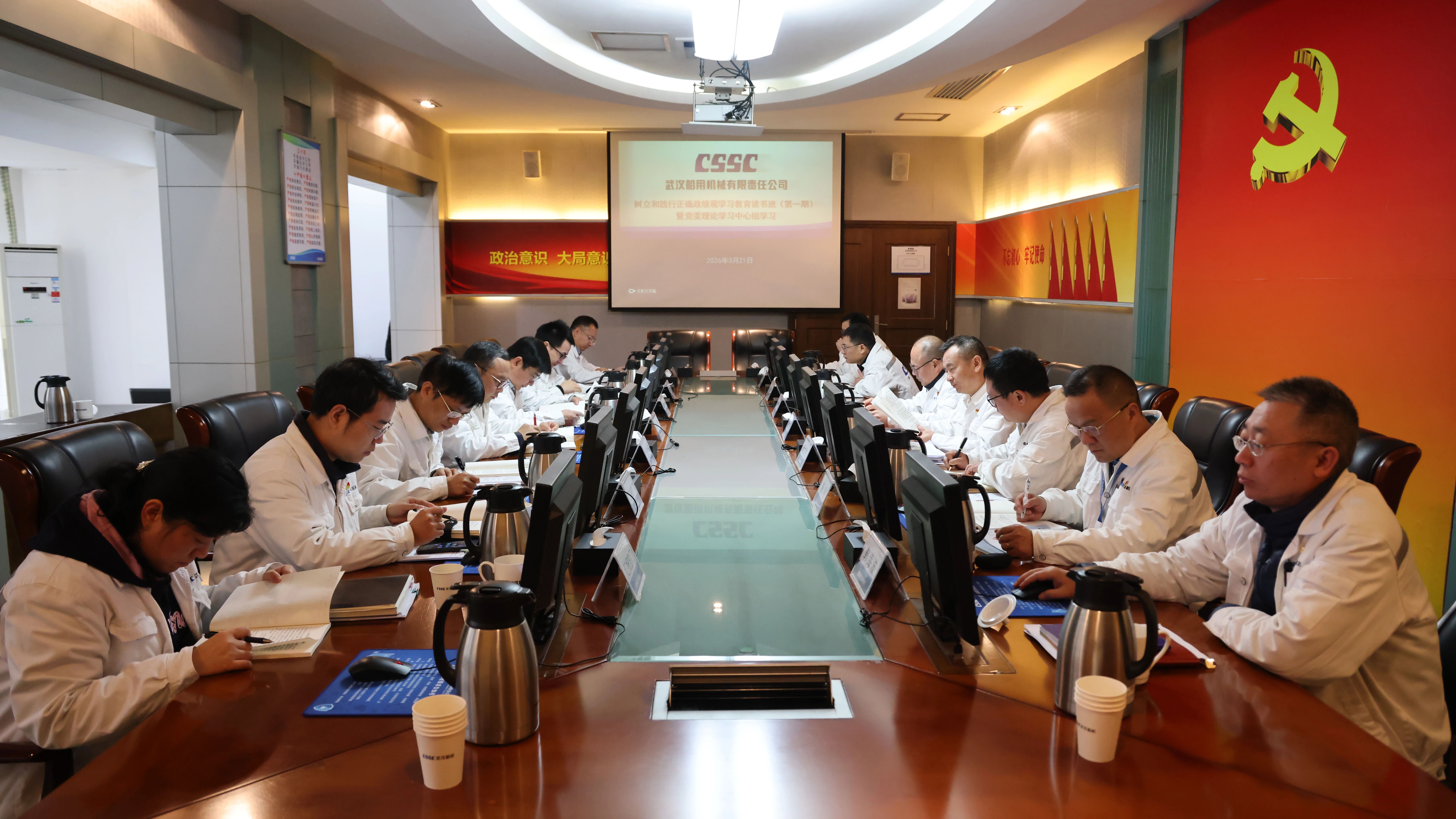 3月21日,中船武漢船機(jī)黨委開(kāi)展樹(shù)立和踐行正確政績(jī)觀學(xué)習(xí)教育讀書(shū)班(第一期)暨黨委理論學(xué)習(xí)中心組學(xué)習(xí)會(huì)議。公司黨委理論學(xué)習(xí)中心組成員參加學(xué)習(xí)研討,總經(jīng)理助理、學(xué)習(xí)教育工作專班成員列席,公司黨委副書(shū)記、總經(jīng)理程立兵主持讀書(shū)班并領(lǐng)學(xué)。