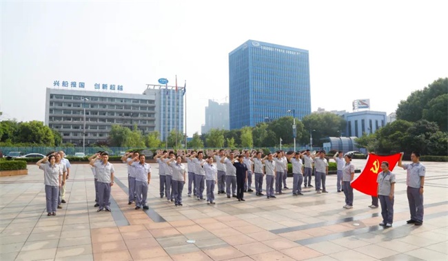 7月1日上午,船機廣場上驕陽映照著黨旗,中國船舶武漢船機36名新黨員胸口的黨徽熠熠生輝。在中國共產(chǎn)黨99歲生日的這一天,他們在黨旗下第一次莊嚴宣誓,說出一名共產(chǎn)黨員一生中最重要的承諾。
