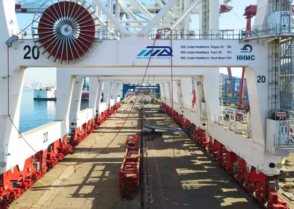 2025年春節(jié)假期,《哪吒2》的熱浪席卷熒幕。哪吒腳踏風(fēng)火輪,手持火焰槍,踏火而行,刺破云霄,騰云駕霧,所向披靡。中船旗下的武漢船機海西重機公司為各大港口打造的“鋼鐵哪吒”——港口起重機(港機)和岸邊集裝箱起重機(岸橋)載著貨物穿梭往返碼頭之間,港機的行走機構(gòu)和岸橋的前伸臂,恰似哪吒的神兵“風(fēng)火輪”“火焰槍”照進現(xiàn)實的科技化身。