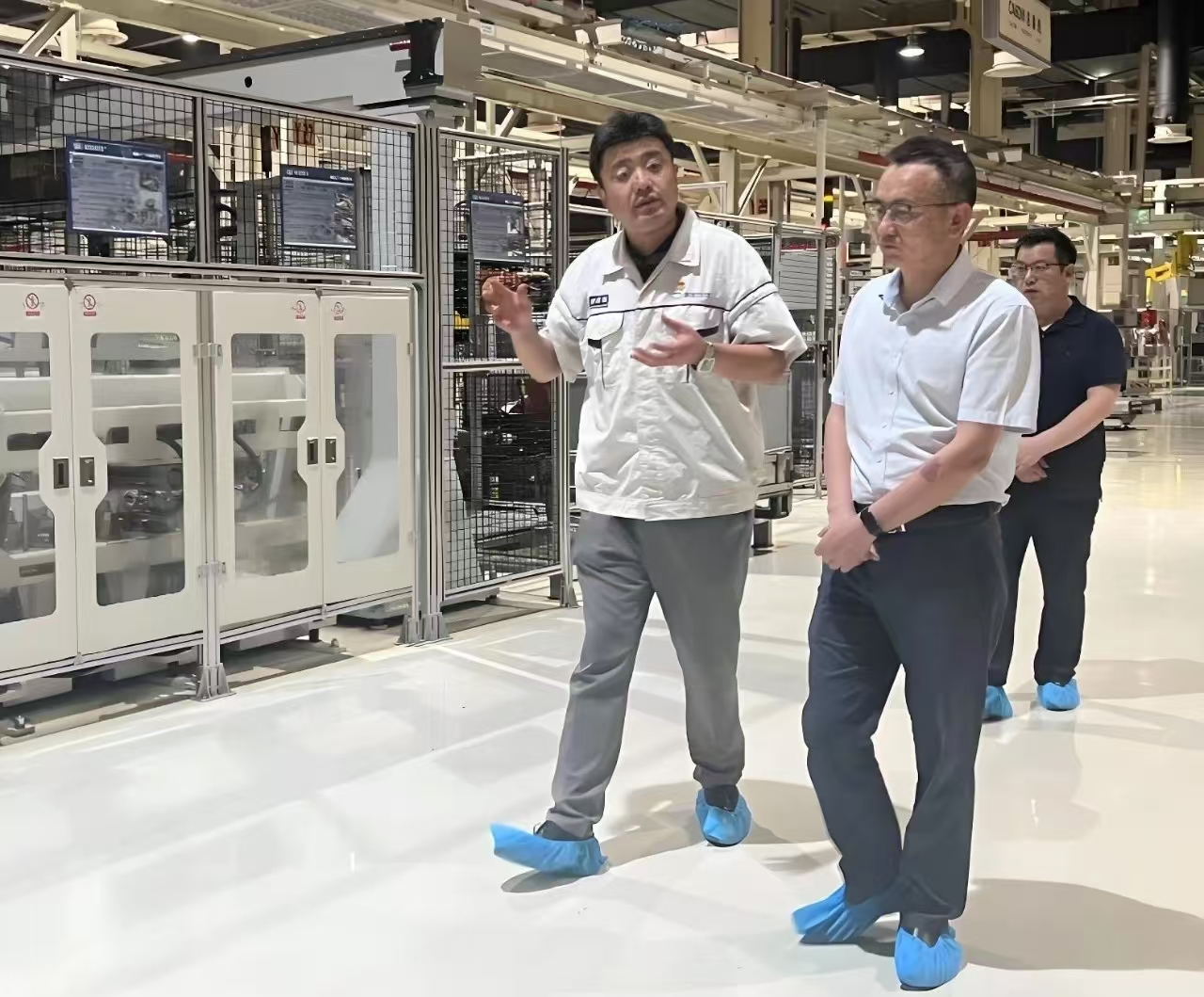 程立兵一行參觀了解放動力惠山基地,現(xiàn)場學(xué)習(xí)了智能制造、精益管理和安全生產(chǎn)等方面做法。解放動力惠山基地以“超級綠色”“超級智能”“超級精益”三大特性展示了其高標(biāo)準(zhǔn)和先進(jìn)性,致力于打造“世界領(lǐng)先的重型發(fā)動機(jī)智能制造基地”,將精益化和綠色化貫穿生產(chǎn)全過程,實現(xiàn)工廠運行管理智能化。智能制造車間里忙碌的機(jī)器人、自動AGV物流小車、智能立體庫、綠色熱試線等引人注目,程立兵一行表示解放動力在智能化改造、數(shù)字化轉(zhuǎn)型、探索綠色低碳可持續(xù)發(fā)展等方面對公司具有較強(qiáng)的借鑒和啟示意義。