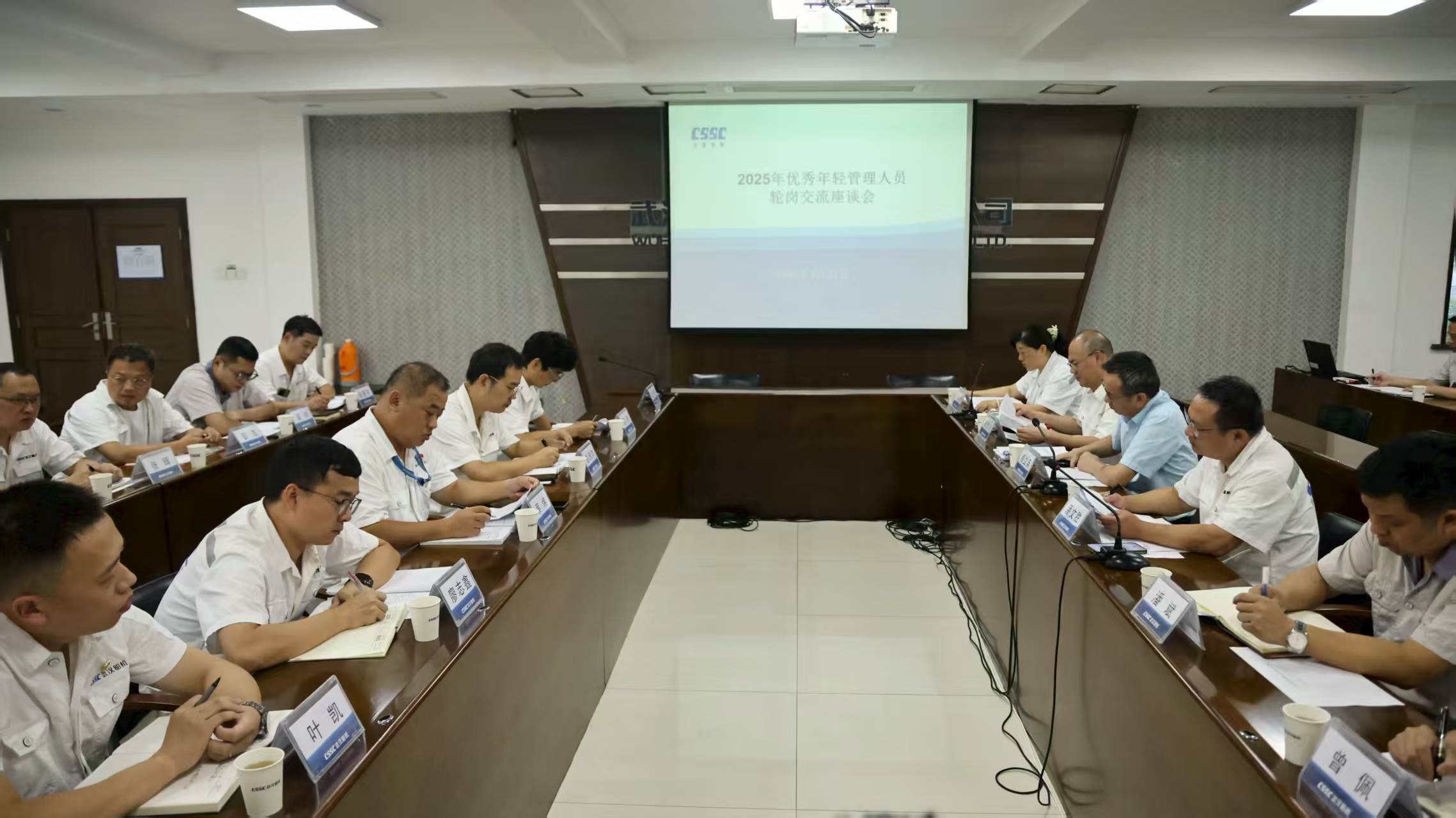 7月31日,中船集團(tuán)武漢船機(jī)召開(kāi)優(yōu)秀年輕管理人員輪崗交流座談會(huì)。公司黨委副書(shū)記、總經(jīng)理程立兵,黨委委員、副總經(jīng)理潘文勝,黨委委員、總會(huì)計(jì)師陳世龍出席會(huì)議。